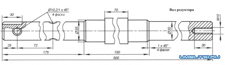Вал со звёздочками переставил с левой части привода на правую. Крепёжные отверстия в щёчках (фланцах) первичного вала редуктора почти совпадают, за исключением некоторых, — их надо просверлить. Такую перестановку можно было бы и не делать, но это упростило трансмиссию и дало возможность обойтись без промежуточного вала.