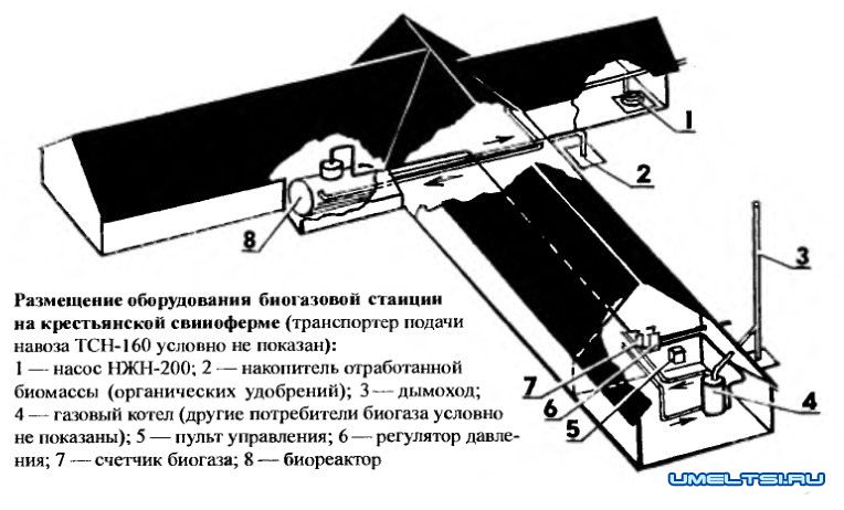 Вырабатываемый в биореакторе газ направляется в котельную. А термофика-ционная вода (теплоноситель) идет на обогрев биореактора и производственных помещений.