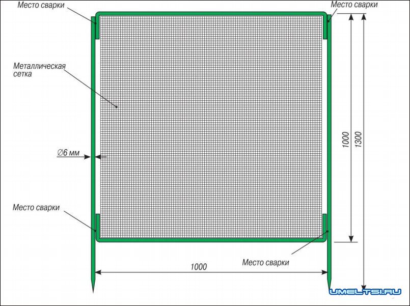 Детали каркасов секций нарубил, изогнул и сварил из 6-мм стальной проволоки. К каркасам секций прикрепил металлическую оцинкованную сетку с ячейками 10x10 мм, привязав её мягкой стальной проволокой. Таких секций сделал 25 штук.