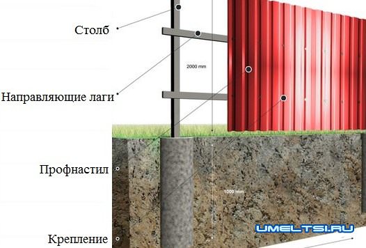 Перед тем как начать строительство забора, в первую очередь необходимо прочитать как это сделать на умельцах.ру а потом идти покупать сам материал. Для забора вам будет нужно профнастил с высотой профиля в 30 – 40 (мм) и толщиной защитного покрытия в половину миллиметра. Кроме самого профнастила, нужно купить трубы 60х40 (мм), только чтобы 3-х метровой длинны, еще трубы 40х20 (мм), также 3-х метровой длинны, саморезы с оцинковкой.