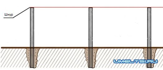 Вы должны начать процесс установки забора с рытья ям для столбов. Если вы будете это делать вручную ручным буром, то этот процесс займет очень много времени и заберет очень много сил, рекомендую поспрашивать у соседей или знакомых бензобур. Глубина вашей ямы должна быть не меньше чем – 80 (см ). Если на вашем участке грунт очень влажен – то вам нужно увеличить яму к 120 (см ) и для надежности необходимо, забетонировать столбы.