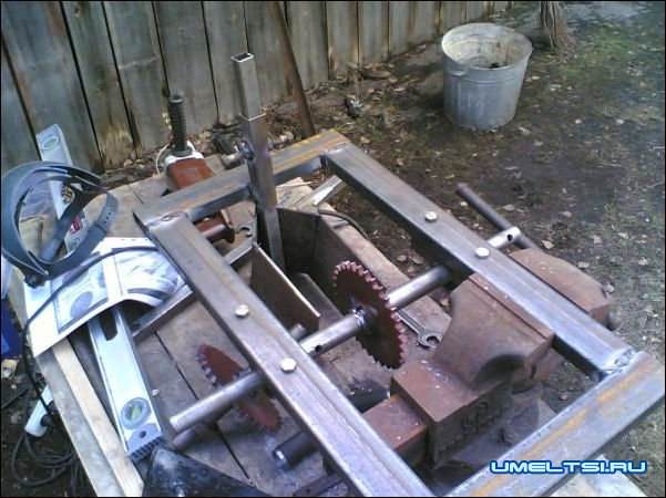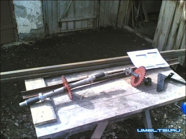Для сборки такого агрегата понадобятся довольно простые детали, из которых и будет собираться сажалка. Нужно приобрести обычные звездочк (количество зубьев на шестерне 32, что на ведущей что на ведомой) и цепь, которая будет их соединять, все остальное должно найтись как полезный хлам у любого хозяина.