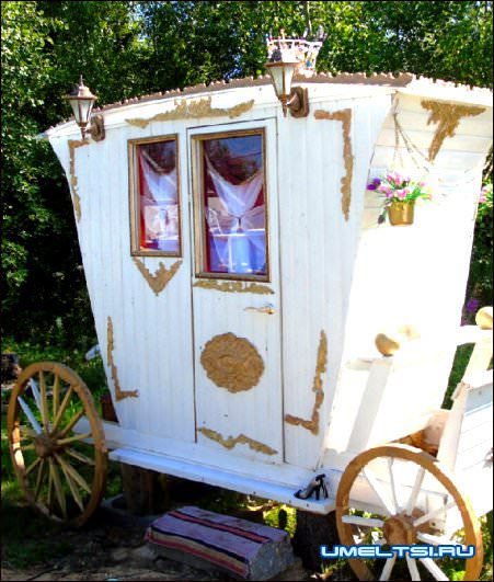 Каркас кареты хозяева сбили из брусьев и обшили вагонкой (фото 1).