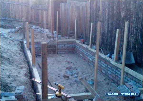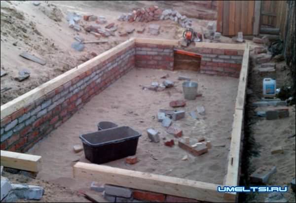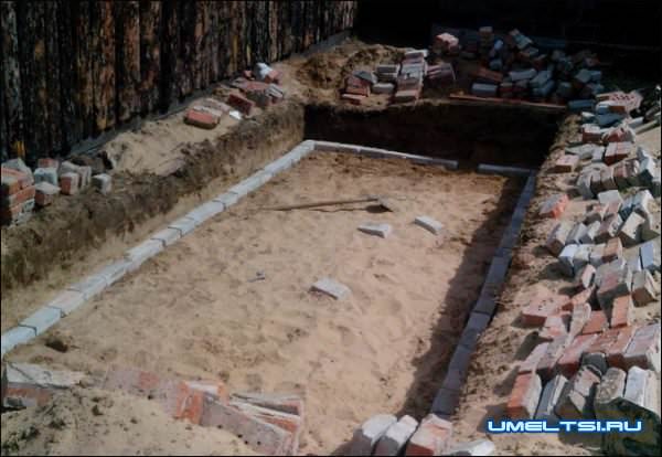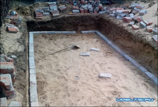 Для этого вырыл яму 60 сантиметров и обложил ее кирпичом (снизу до верха ямы получилось 6 слоев)