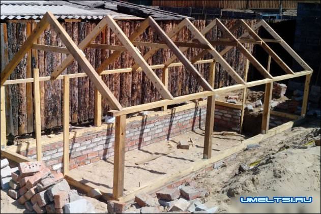 Поверх кирпичей положил деревянный каркас