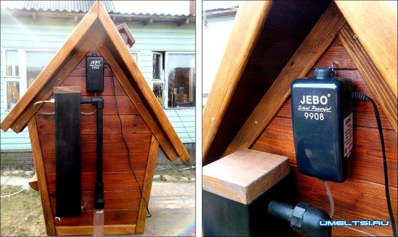 Дымогенератор нужно расположить с тыльной стороны домика.