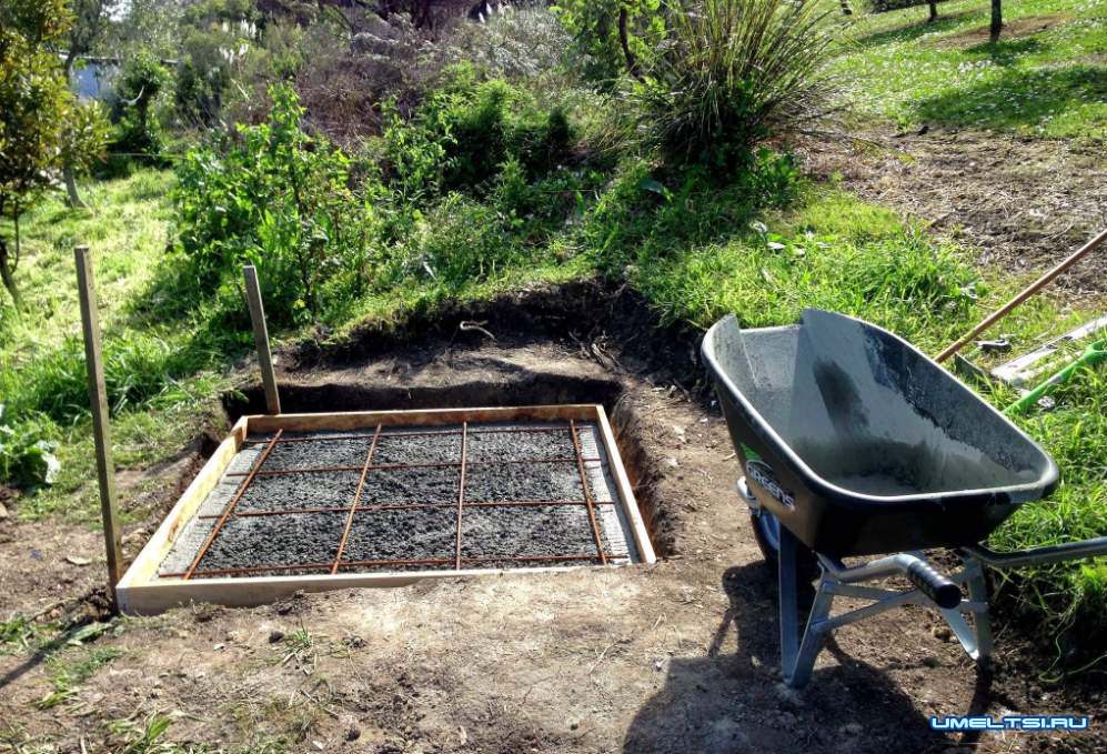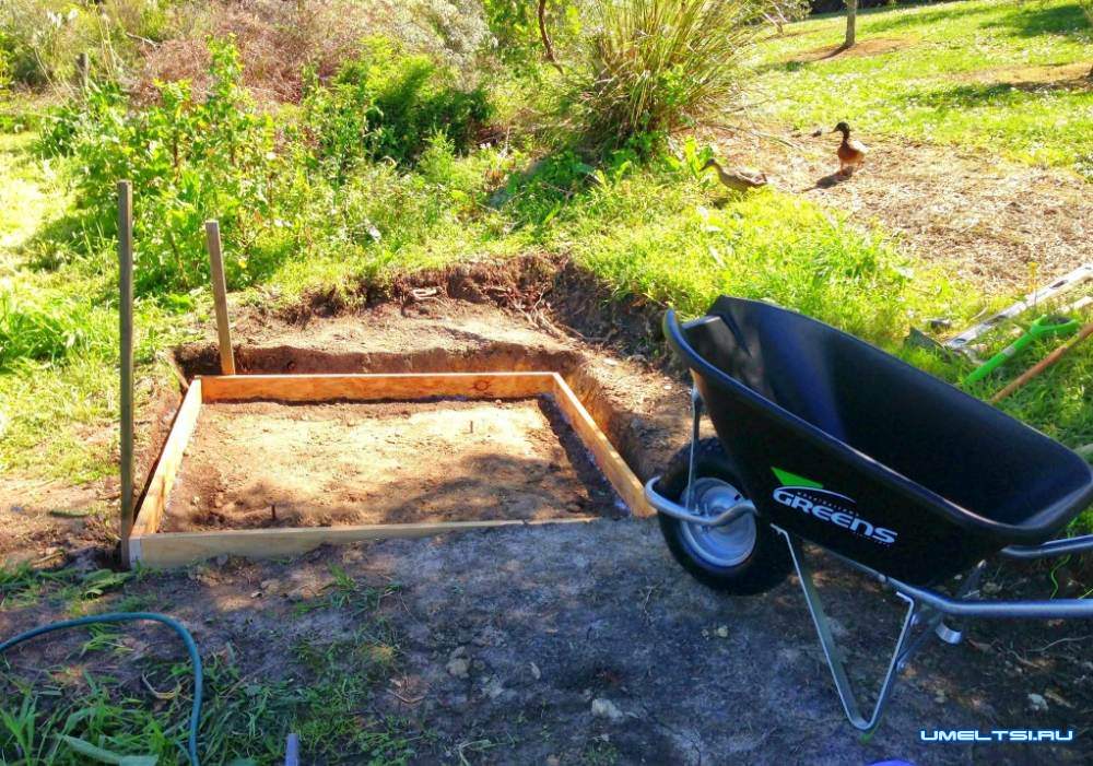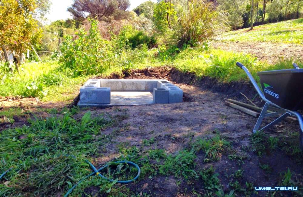 В начале строительства уличной/садовой печки необходимо сделать разметку в том месте где предпочли строительство. После этого необходимо вырыть яму под фундамент, глубиной один штык, что ровняется 30 см.