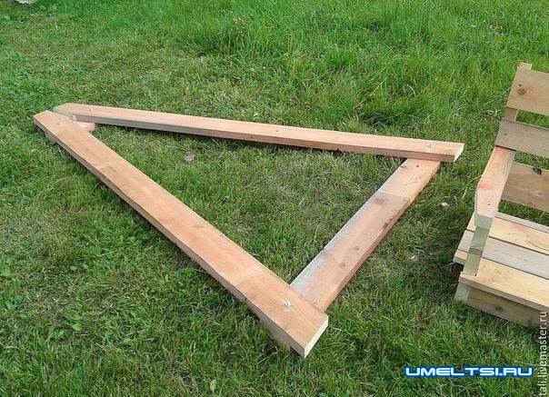 Здесь нужно подвесить скамью и изготовить каркас для навеса.