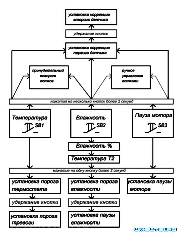 Руководствуясь схемой З, выставляю необходимую температуру и периодичность поворота лотка и запускаю систему.