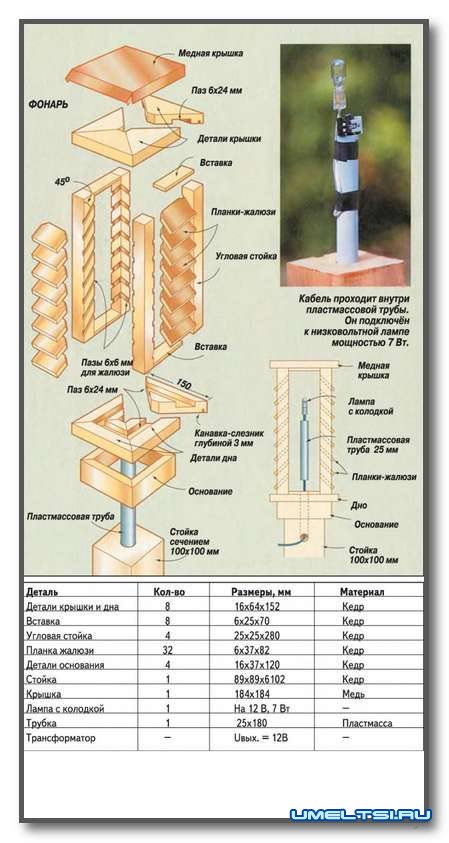 На поверхности деталей фонаря наносят атмосферостойкое покрытие. Медная крышка — дополнительная защита от непогоды — со временем покроется патиной.