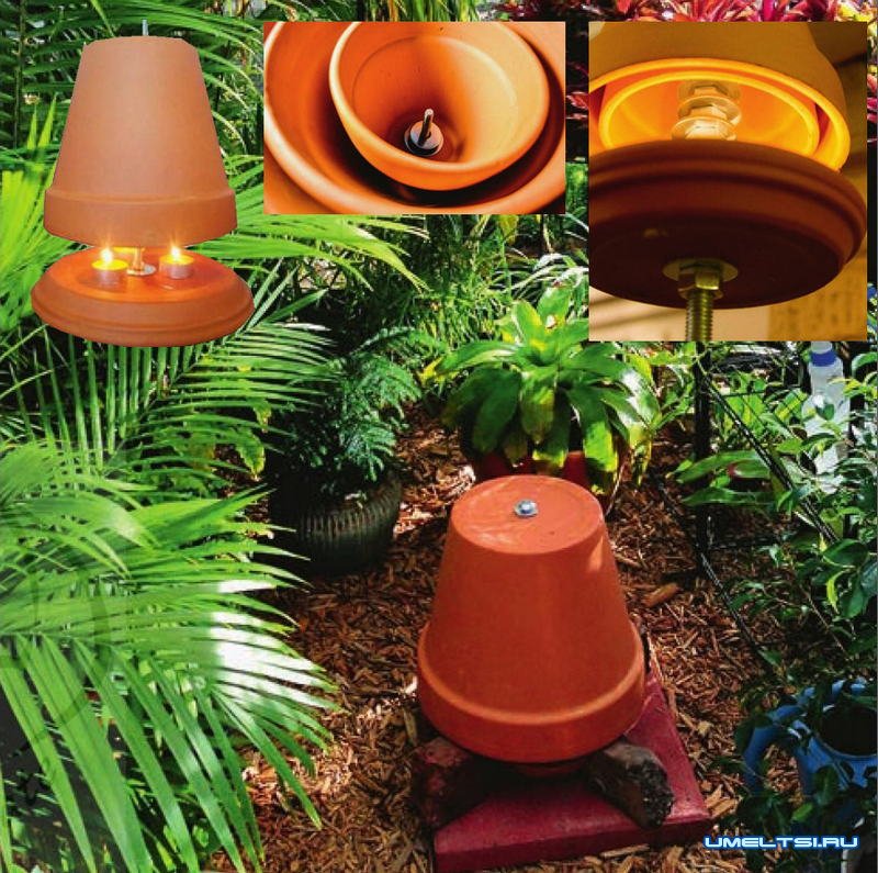 Простой «обогреватель» для теплицы можно смастерить из двух горшков разного диаметра, вложенных друг в друга и закрепленных на резьбовую шпильку через отверстия для воды. На шпильку нанизываются шайбы и гайки, фиксирующие горшки на некотором расстоянии друг от друга. В качестве подставки используются либо кирпичи, либо керамический поддон от горшков, который тоже надевают на шпильку. Греющий элемент - миниатюрные свечи в стаканчиках. Получается не просто керамический абажур, а настоящая ловушка для тепла. В отличие от металлического ведра керамические горшки нагреваются не быстро, но и остывают не сразу, медленно отдавая тепло в течение длительного времени. Реально горшечный прибор начинает обогревать теплицу через 3-4 часа. Понятно, что полноценного отопления таким образом не получится, но помочь растениям во время внезапных заморозков можно. Кстати, устройство легко сделать подвесным, чтобы оно не занимало места на грядках.