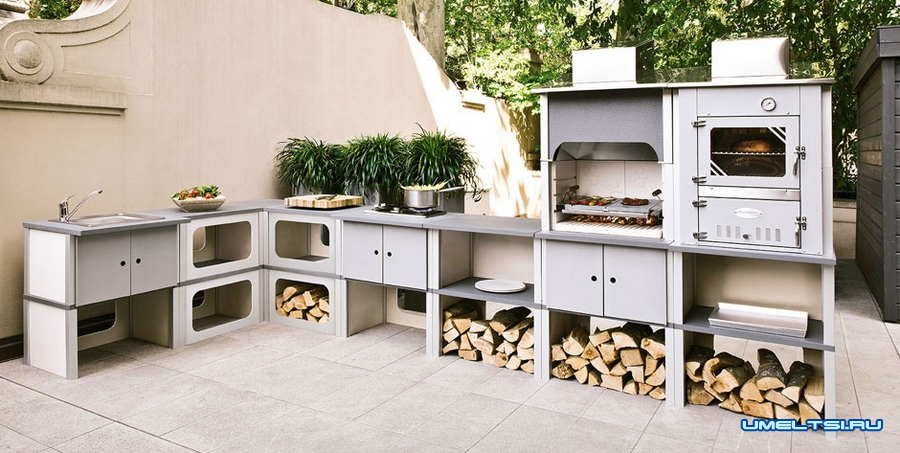 Варианты зон отдыха с приспособлениями для приготовления еды в печи разнообразны. Это могут быть: