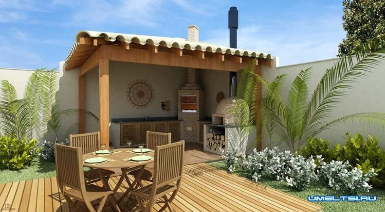 По своему функциональному назначению барбекю - это не зона отдыха, а скорее столовая, совмещенная с кухней и оборудованная всем необходимым для готовки и приема пищи.