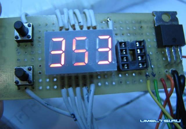 Также нам нужен контроллер. Для демонстрации я выбрал самый удобный и популярный Arduino Uno. Стоит учесть, что для того, чтобы иметь возможность выбрать контроллер самому – я сделал блочную паяльную станцию. Также на м понадобятся две кнопки подтянутые к +5В сопротивлениям и 10кОм, а также 7-ми сегментный индикатор на три разряда. Выводы сегментов подключаются через сопротивления 100 Ом.