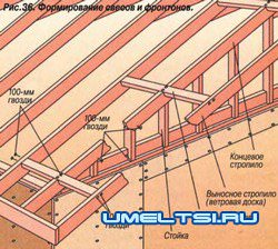 Прибейте консоли к первой паре стропил и в пазах торцевых стропил 100-мм гвоздями.