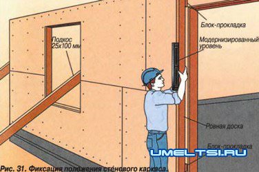 Если у вас нет уровня нужной длины, то его можно «нарастить» с помощью ровного бруска и двух блоков-прокладок одинаковой толщины, с которыми удобно пользоваться модифицированным уровнем.