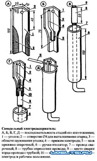 Дело в том, что существует много разновидностей конструкции электрододержателей как профессиональных, так и самодельных. И это не случайно, потому что к этому нехитрому инструменту предъявляется немало требований, начиная от безопасности и кончая удобством в работе.