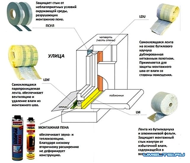 Просвет, который образовался по периметру необходимо правильно изолировать от проникновения пара, влаги, теплого воздуха изнутри помещения и холодного – извне. Согласно ГОСТу используется трехслойная изоляция.