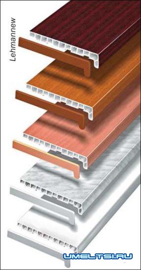 Еще один тип современных подоконников — модели из поливинилхлорида (ПВХ). Такие изделия имеют все достоинства оконных ПВХ-профилей: они долговечны, не подвержены гниению, трудно воспламеняются, стойки к химическим веществам, влаге и солнечному свету, просты в уходе (можно чистить неабразивными составами). На их поверхности нет пор, поэтому там не скапливаются бактерии. К тому же благодаря много-камерности данные конструкции отличаются повышенной прочностью, жесткостью формы, хорошей теплоизоляцией. На их лицевую сторону можно нанести рисунок, например в виде структуры дерева, а сверху — слой глянцевого или матового покрытия, которое будет защищать от влаги, солнечного света и царапин. Правда, далеко не всем потребителям по душе строгий, типично офисный дизайн ПВХ-подоконников. Для интерьеров в стиле классики и кантри подобные изделия совсем не подходят. И все-таки они достаточно популярны, во многом из-за демократичной цены — от 400 руб./пог. м.
