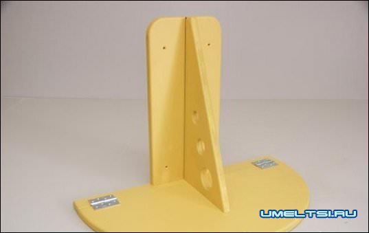 IX. Покраску выполняем в два три слоя. Нанесение каждого последующего слоя выполняем после полного высыхания предыдущего. После окончания покраски, треугольник крепим шурупами с помощью завеса к средине доски на 3мм ниже верхнего края.