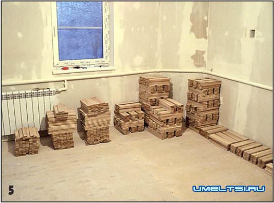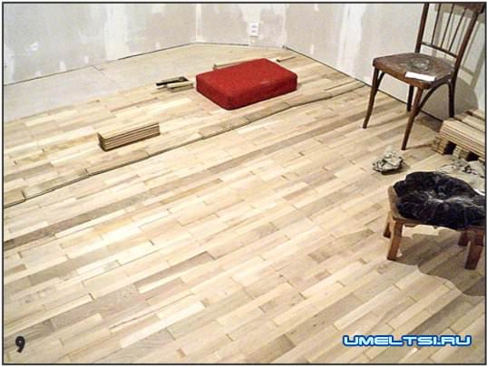 7. Паркет нужно стараться подбирать по текстуре и цвету. Работа будет приносить удовольствие если подложить под колени что ни будь мягкое похожее на подушку.