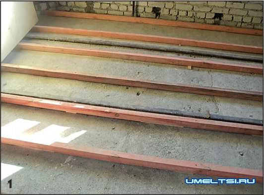 1. В моём случаи я использовал фанеру 12x1525x1525 мм, а лаги сделаны из доски 50x150x6000 мм., доска была распущена на бруски 50x50 мм и тоже были обработаны антисептиком против влаги и грибка. По уровню выровнял лаги и зажал к бетонному основанию и шурупами.