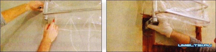 1. Делают разметку и по горизонтальному уровню устанавливают крепеж.