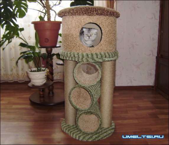 Сегодня есть возможность приобретения готовых кошачьих уголков и домиков. Выбор их огромен, цены вполне приемлемые и создают впечатление, что покупка такого изделия оправдана и соответствует потребностям животного. Но разве непонятно, что кое-что в таком изделии будет точно отсутствовать? Правильно! Если комплекс не сделан своими руками, то и души и любви в него вложено не будет. А за «полигон для охоты», сделанный собственноручно ваш любимец будет вам особенно благодарен.