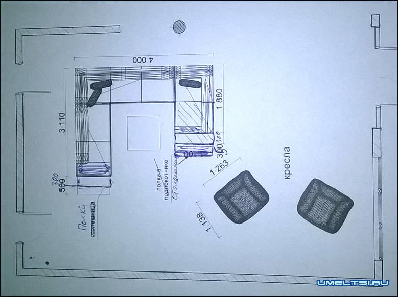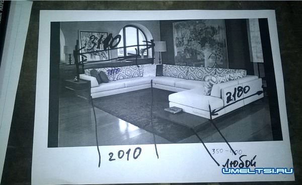 Сначала в салоне присмотрел себе модель дивана (очень понравилась одна итальянская модель). Дома все продумал и сделал чертеж.