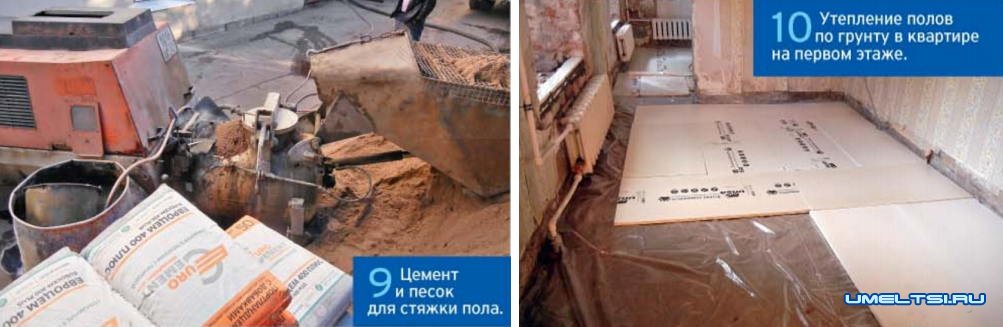 Конструкция черновых полов зависит от типа здания и вида финишного напольного покрытия. При производстве работ в современном здании с железобетонными перекрытиями основанием для чистовых полов может служить стяжка, выровненная ровнителем. В домах старого фонда придётся устраивать полы по лагам или по сухой стяжке (табл. 3, фото 9-12).