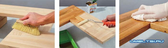 3. Втереть масло мягкой тканью и удалить излишки. Дать поверхности хорошо высохнуть.