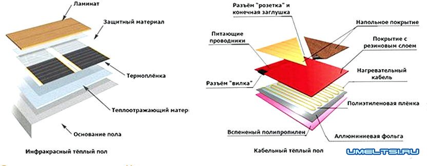 Существует несколько типов теплых полов, которые отличаются конструкцией и принципом действия. Любой теплый пол подойдет под ламинат, если производитель последнего отмечает его совместимость с теплым полом.