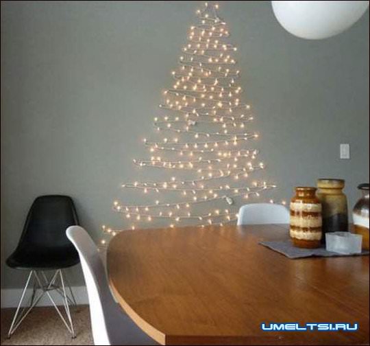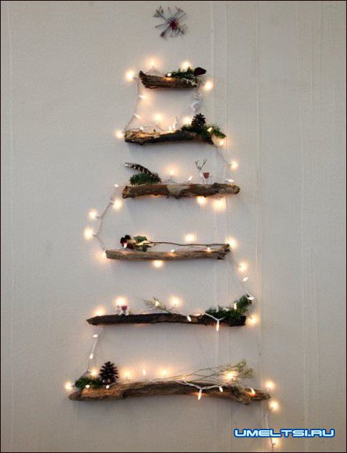 Если готовые игрушки и гирлянды (как правило, китайского производства и плохого качества) также ассоциируются с «шаблоном» и «рутиной», то можно самостоятельно изготовить украшения и саму ёлку своими руками из подручных или легкодоступных материалов.