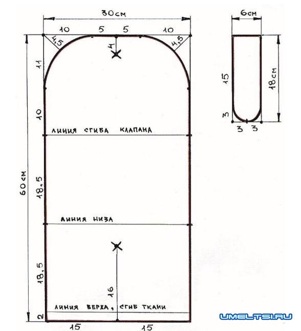 • Чтобы сумка не была приплюснутой, зашиваем уголки как показано на рис.6, чем длиннее шов, тем шире сумка.