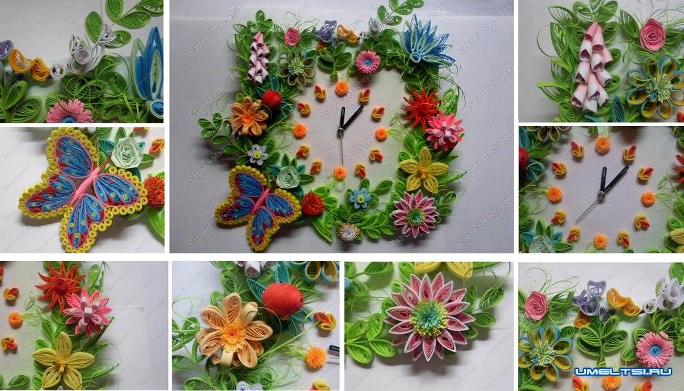 Обычно из разноцветных элементов квиллинга в разном виде создают цветы, насекомые, деревья, животные, ягоды, и т. п.