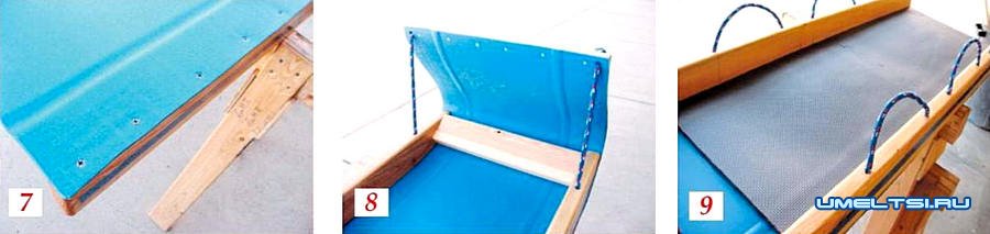 7. На заключительном этапе на основании суперклеем закрепил вспененный коврик для йоги, чтобы внукам было удобно кататься (фото 9).