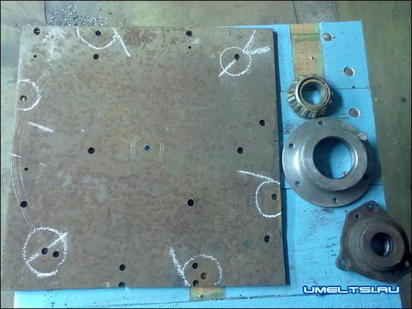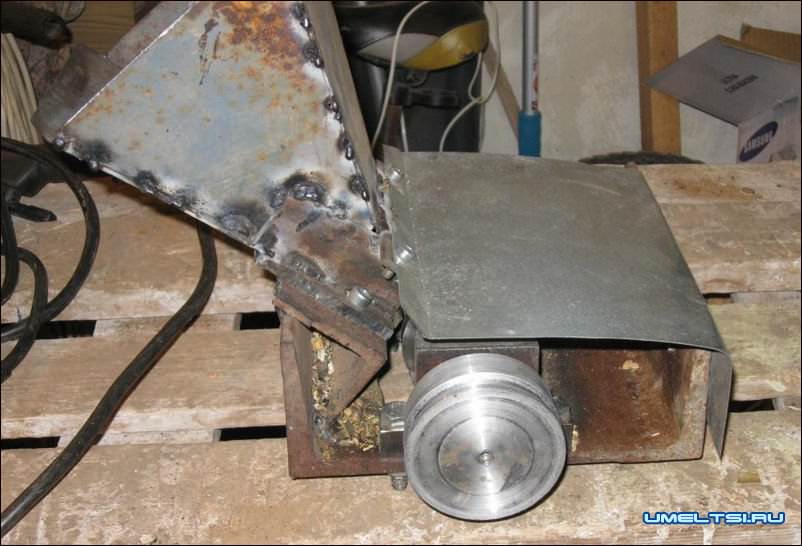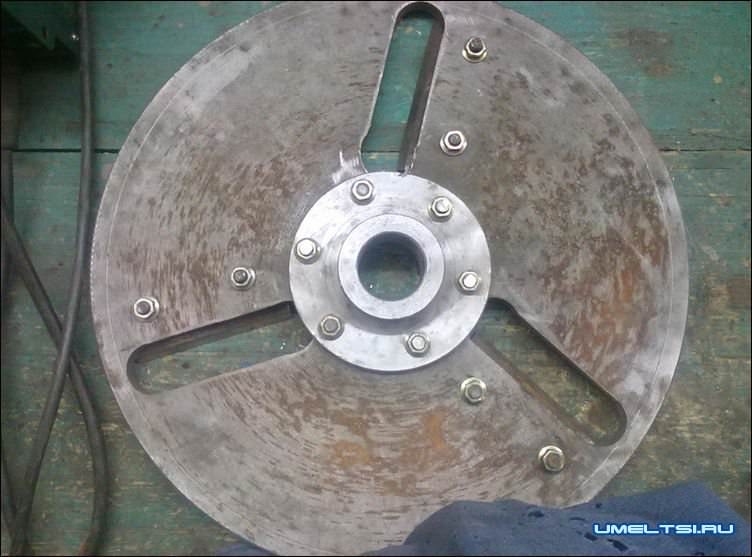 Материалом для изготовления мотоблочного измельчителя будет служить швеллер 250. Дополнительно потребуется шкив сечением 87 миллиметров, и ножи длиной 100 миллиметров от электрорубанка. Необходимо соорудить приемный бункер, в который и будут загружаться разнообразные ветки. Бункер оснащается неподвижным острым дисковым ножом, который и будет измельчать ветки. Лучше брать диски диаметром примерно 80 мм. Диск крепится на болты М8. Таким образом, ножи не будут постоянно забиваться мелкой трухой при переработке дерева.
