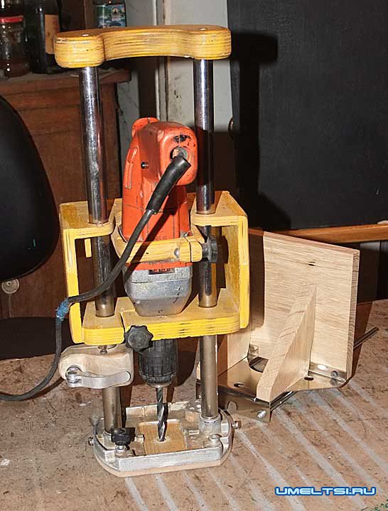 Во время домашних работ часто приходится сверлить отверстия, и они должны быть ровные, то есть под прямым углом к плоскости. Обычной дрелью это сделать очень сложно, часто бывают перекосы в ту или иную сторону. Решили эту проблему, изготовив приспособление стойку для дрели.
