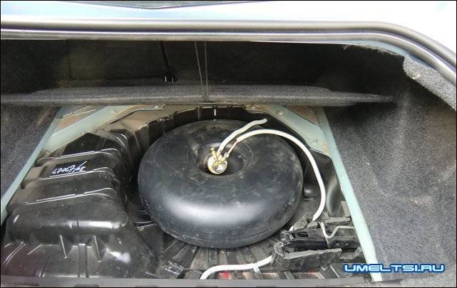 2. Газовый баллон. При установке газобаллонного оборудования, большинство автомобилистов пытаются добиться компактности. Для этого стоит использовать баллоны в виде тора. Одним из самых востребованных на современном рынке является баллон Атикер размером 630 на 255 мм, вмещающий 54 литра голубого топлива.
