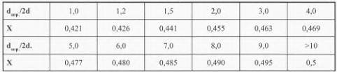 X — определяется по таблице [1] в зависимости от соотношения donp/2d (в нашем случае 38/ (2x8) = 2,375)