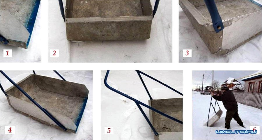 Сейчас в магазинах полным полно различного снегоуборочного инвентаря. Но я предпочитаю мастерить его сам, это и экономичнее, и всегда можно подогнать орудие труда под себя. В прошлом году соседка попросила смастерить большую лопату, которой не только можно собирать снег, но и «свозить» его. Заказ я выполнил. Оценив конструкцию в деле, изготовил такую же для себя.