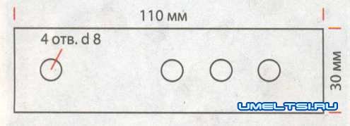 Взял часть рамы с задней вилкой от взрослого велосипеда и заменил штатное колесо на колесо от детского велосипеда. Родной руль присоединил к наклонной раме двумя болтами (фото 1). С режущим органом не стал мудрить, а использовал хорошо известный плоскорез Фокина. Прикрепил его к трубке седла с помощью трех болтов и распорной планки (фото 2). Вырезал ее из листовой стали толщиной 3 мм (см. эскиз). Просверлил в ней четыре одинаковых отверстия: одно для фиксации плоскореза, остальные — для придания инструменту нужного наклона, позволяющего не только срезать сорняки, но и рыхлить почву. Эксплуатация приспособления во время прошлого дачного сезона показала его производительность и эффективность. Раньше на прополку четырех соток вручную у меня уходило несколько дней, а с помощью малой механизации стал укладываться в несколько часов. Кроме того, отпала необходимость ползать по огороду, что само по себе — серьезный аргумент в пользу моей самоделки.