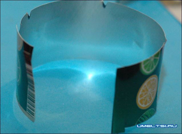 Для завершения работы над нашим оборудованием нам понадобятся несколько действий. Для того, чтобы процесс складывания был еще проще, используем остатки баночки. Из них вырезаем маленькую монтировку. А на верхней части баночки делаем маленький разрез, примерно шести миллиметров.