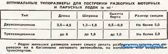 На рисунке 1 изображен стандартный контейнер и приведены его размеры. Они являются основой при выборе проекта лодки и разработке конструкции. Опыт эксплуатации разборных лодок показал, что постройка таких судов посильна любителю средней квалификации, если их размеренна укладываются в приведенную таблицу. При создании разборной лодки больших размеров могут встретиться серьезные трудности. К тому же в любительской практике такая лодка по ряду соображений просто неудобна: вместо одной большой лучше иметь две-три маленькие, более транспортабельные и маневренные. Впрочем, можно сказать с полной уверенностью, что на сегодняшний день даже в любительских условиях вполне реально создание полноценной разборной мотолодки или швертбота длиной до 5—6 м.