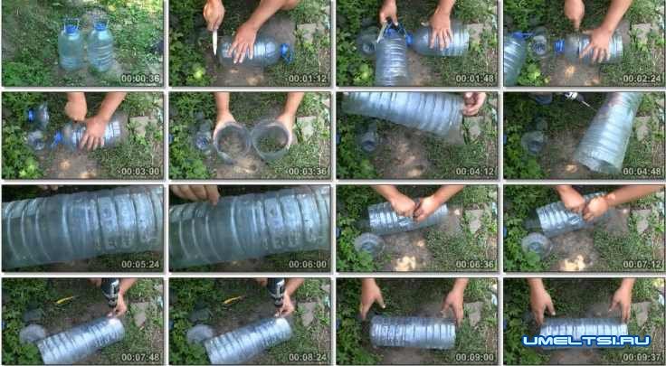 Ход работ по изготовлению эффективной раколовки из пластиковой бутылки: