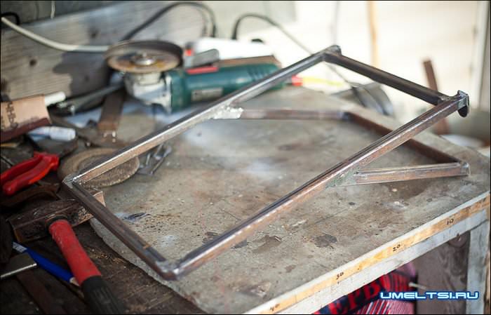 Так как приварить что-то к нержавейке тяжеловато, сверлить дыры тоже как-то не очень хочется мы сделаем съёмную полочку.