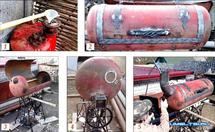 1. На базе приема металлолома приобрел газовый баллон объемом 100 л и стальную станину от швейной машинки.