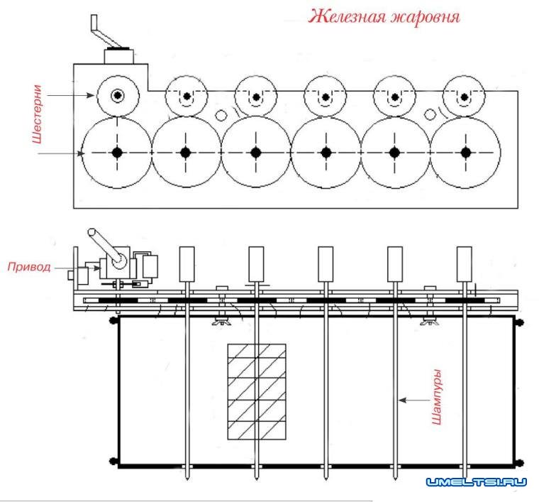■ Для более удобного и быстрого приготовления шашлыка можно изготовить (см. рис. на стр. 13) и установить на мангал механический шестеренчатый редуктор с электроприводом для автоматического вращения шампуров (фото 9)