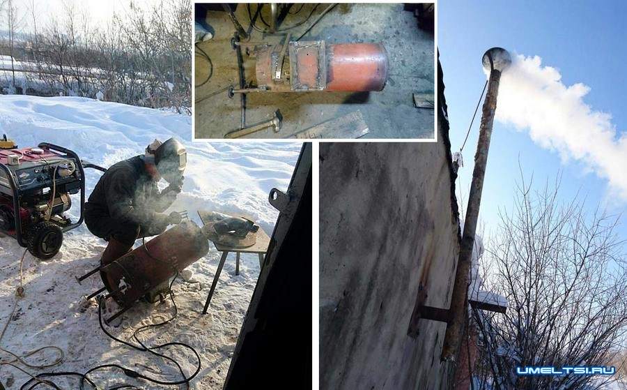 На фото показано, как по этапам изготовляется буржуйка.