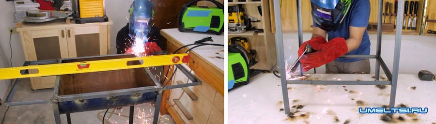 Из стального уголка 25х25х3 мм вырезал четыре ножки длиной 850 мм. Приварил их к раме внахлест (фото 3).